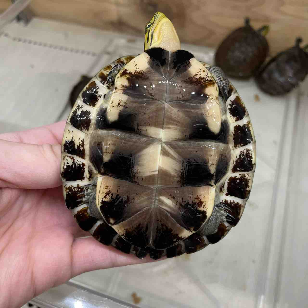特徴としては小柄で甲羅のパステルイエローとブラックのコントラストが強く、皮膚もやや明るい個体も見られる等でしょうか。