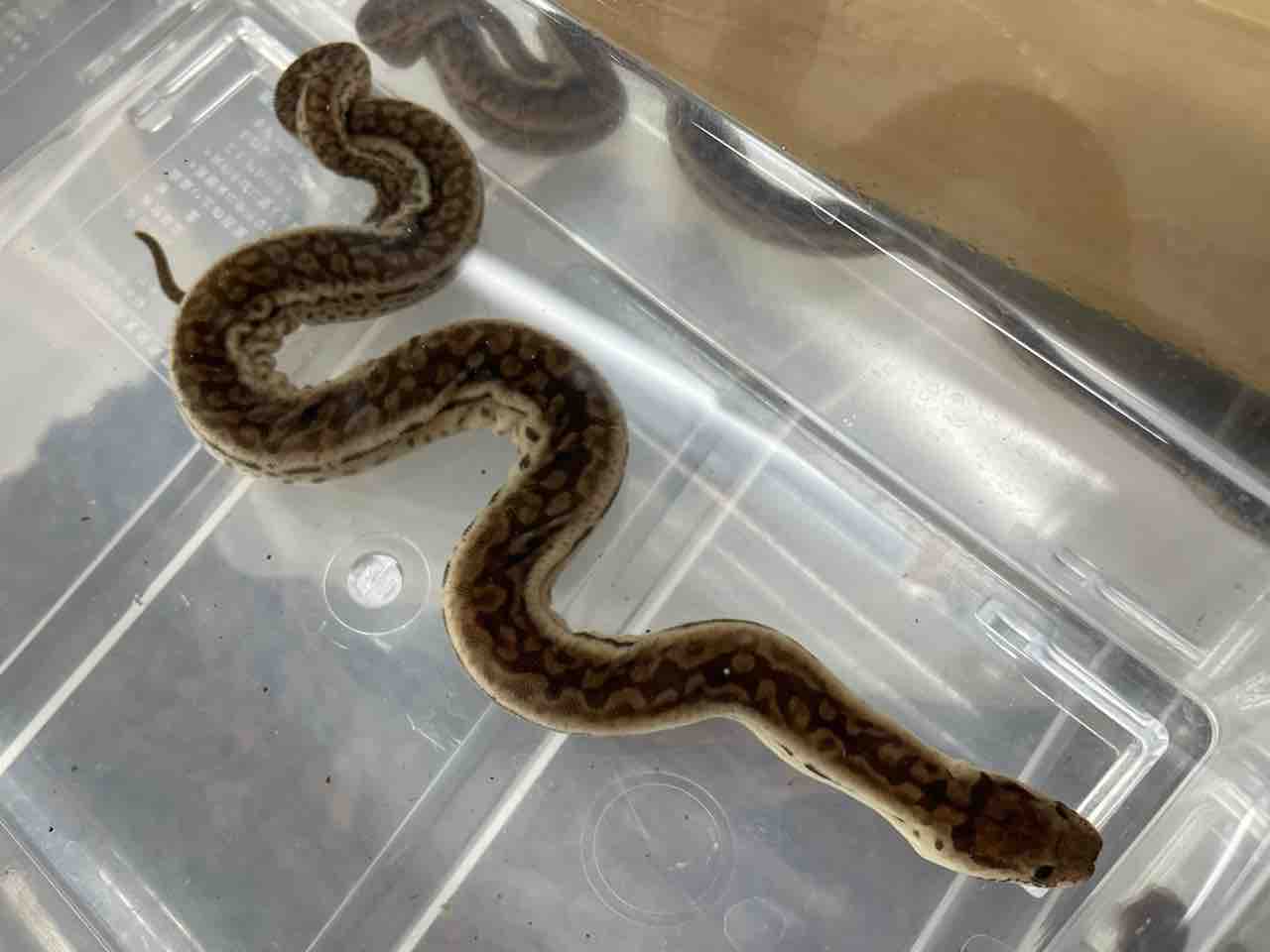 パグ犬のような面白い顔面に目が行きがちですが、本種は餌である魚に対して完璧なコンストリクト(締め付け)が出来るヘビでもあります。そのためのヤスリの様な皮膚なんでしょうね。