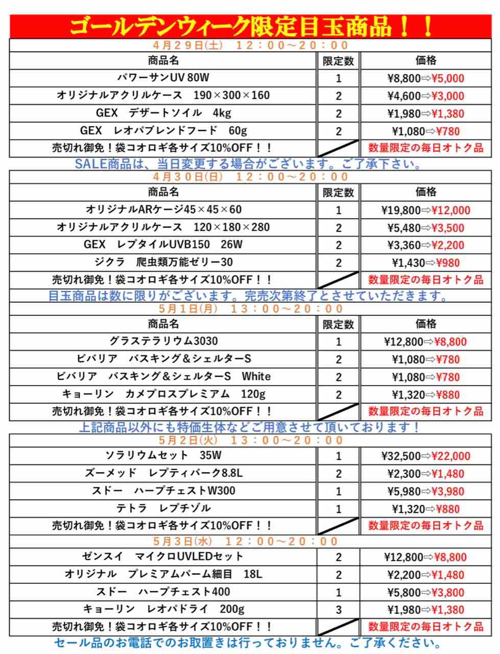 生体は勿論のこと、餌や用品等もお安くGETできるチャンス!