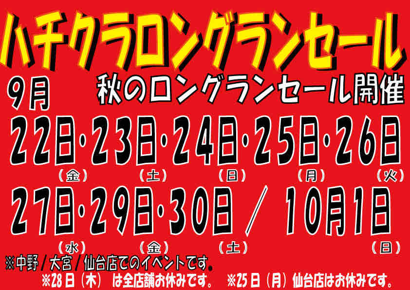 ◎ハチクラ秋のLONGSALE!!