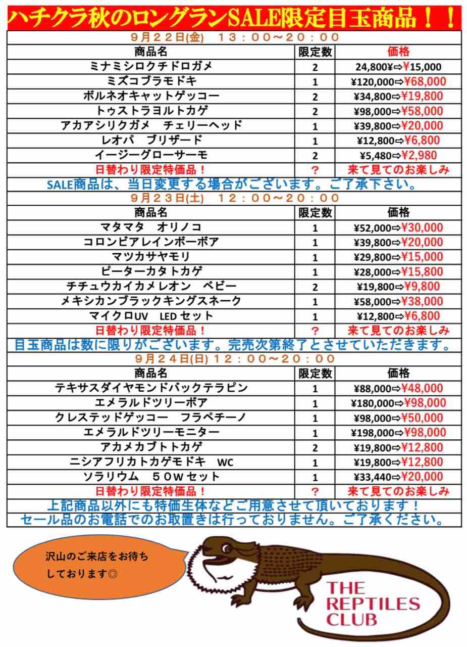 1F両生、カメレオンコーナーセール内容!