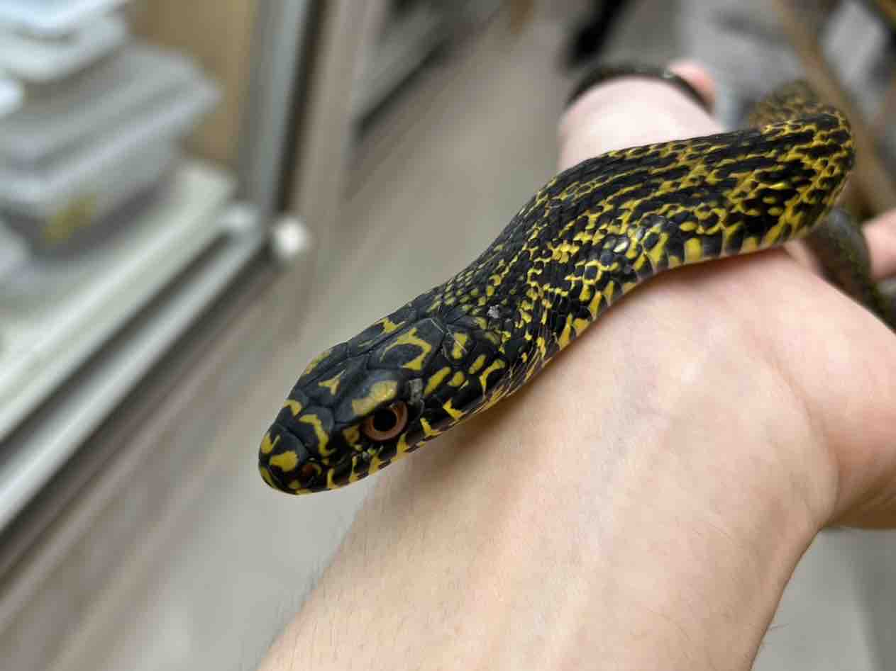 この類いのヘビ特有の臭い汁や、手当り次第咬むということも無く落ち着いており、餌もピンセットからマウスを食べてくれたのでなんだか拍子抜け感が否めないです。