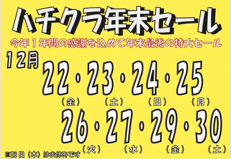 ハチクラ年末セール!開催します!!