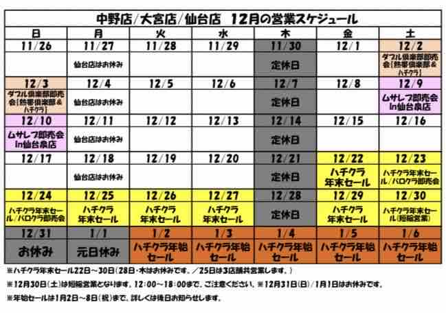 今回は年末年始の営業スケジュール&セール情報のお知らせです!
