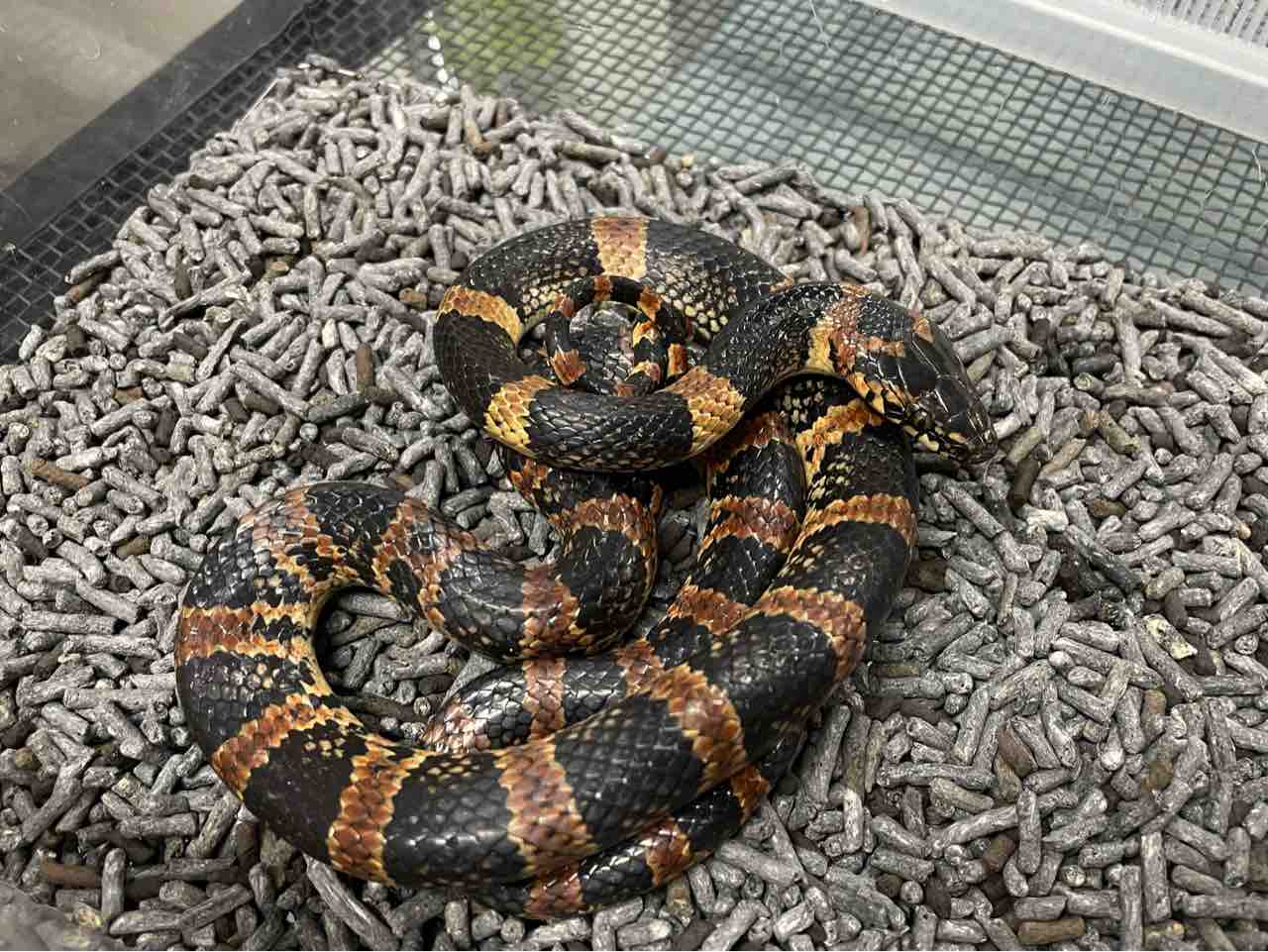 飼育は通常のネズミヘビと似たような環境をベースに、シェルターの設置・やや高めの飼育温度(25~30℃で一部ヒーター等で30℃以上のスポットを設ける)・ある程度の湿度(ウェットシェルターでも良い)を用意してやると良いです。