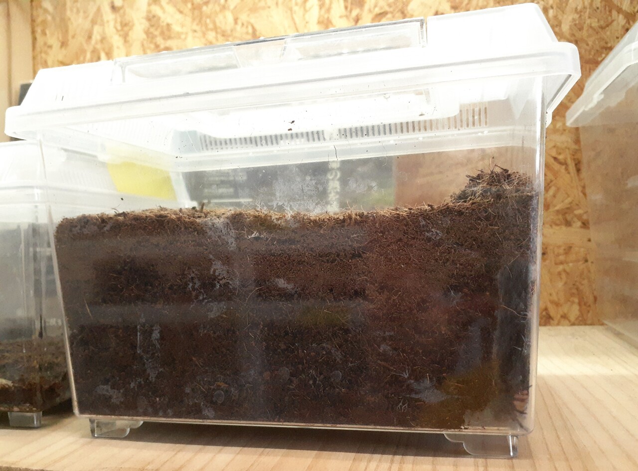 けっこう深くまで掘るため、高さのあるケースに八割くらい土を入れてあげるのがベスト!