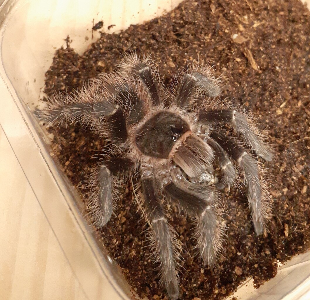 薄くピンクを纏いつつも暗い灰色をしたよく毛を飛ばすでかいバードイーター!!