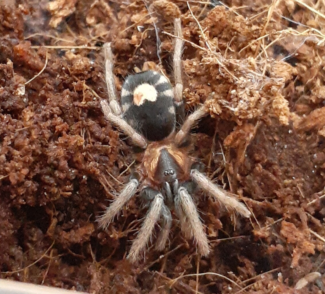 腹部の赤い毛、ゼブラの脚、白い頭胸部、成長すればさらにはっきりと色の差が出てきます!