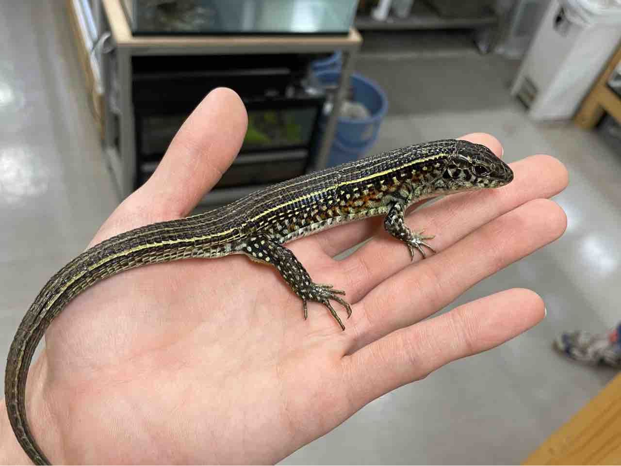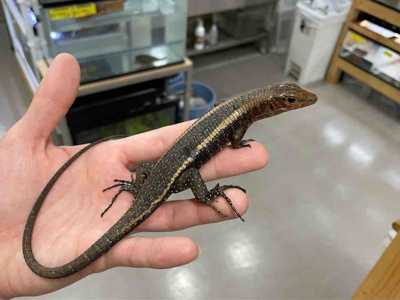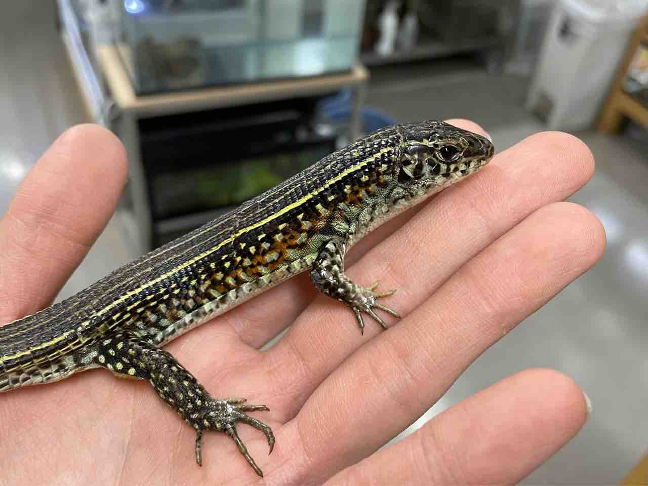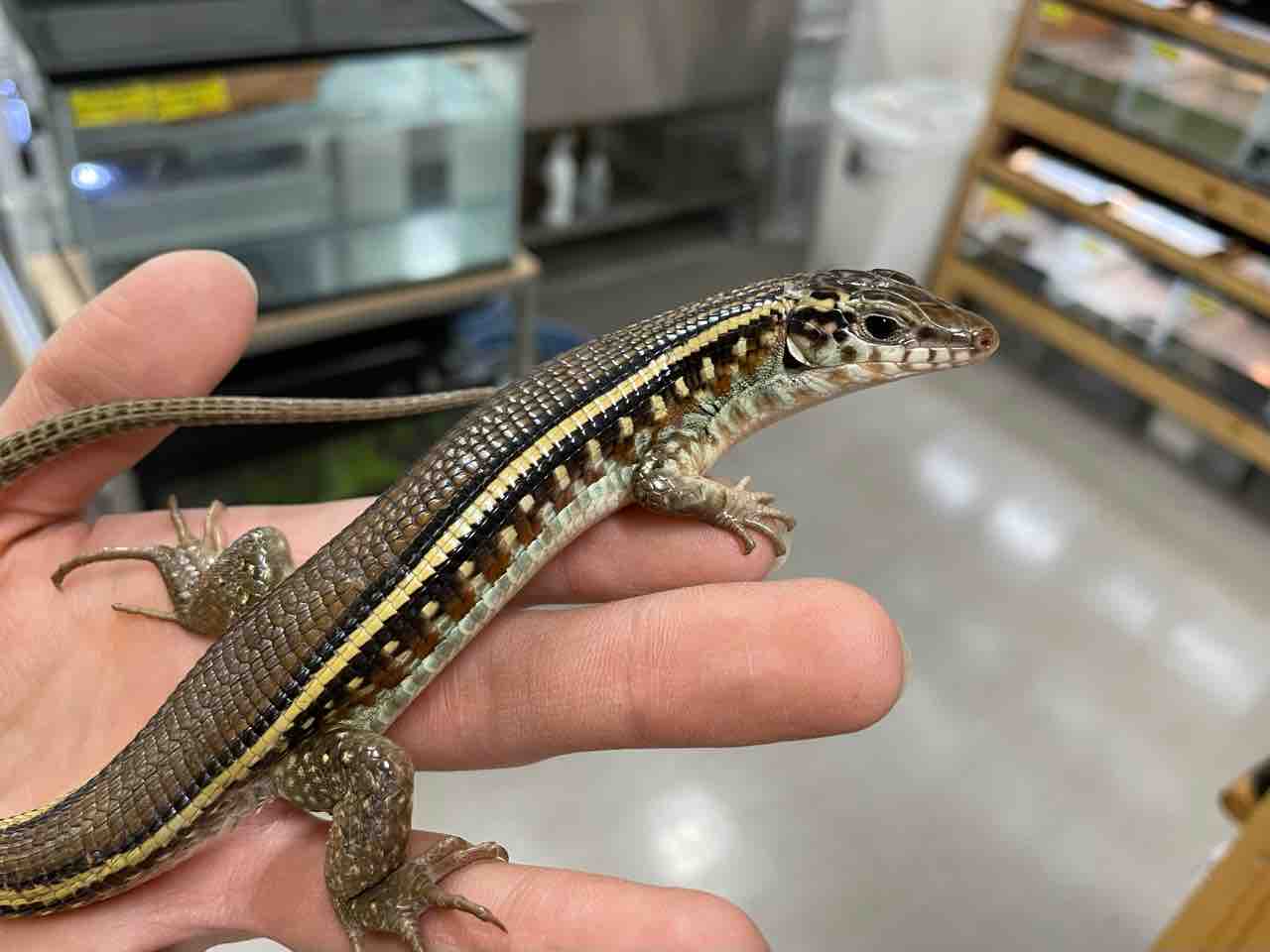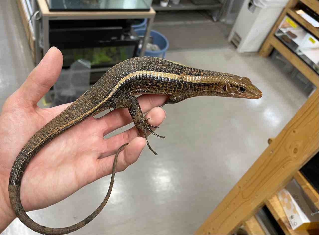 本種は元々は深い緑色が美しいカナヘビですが飼育下の累代の影響か年々それが薄れているように思えます。