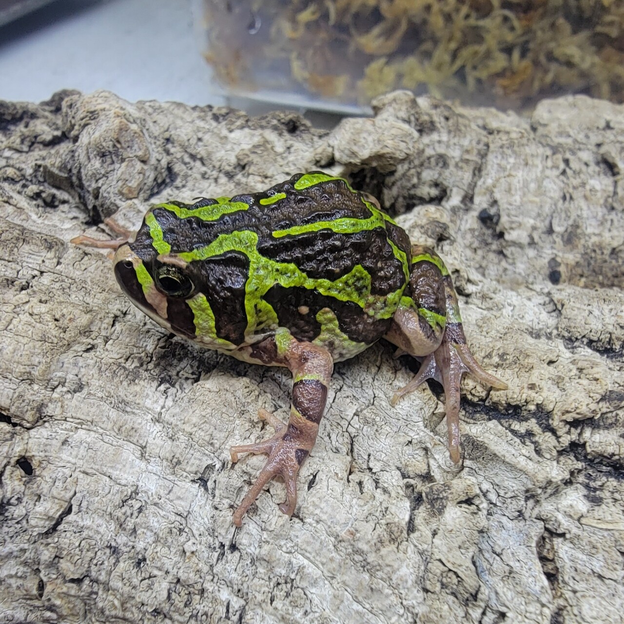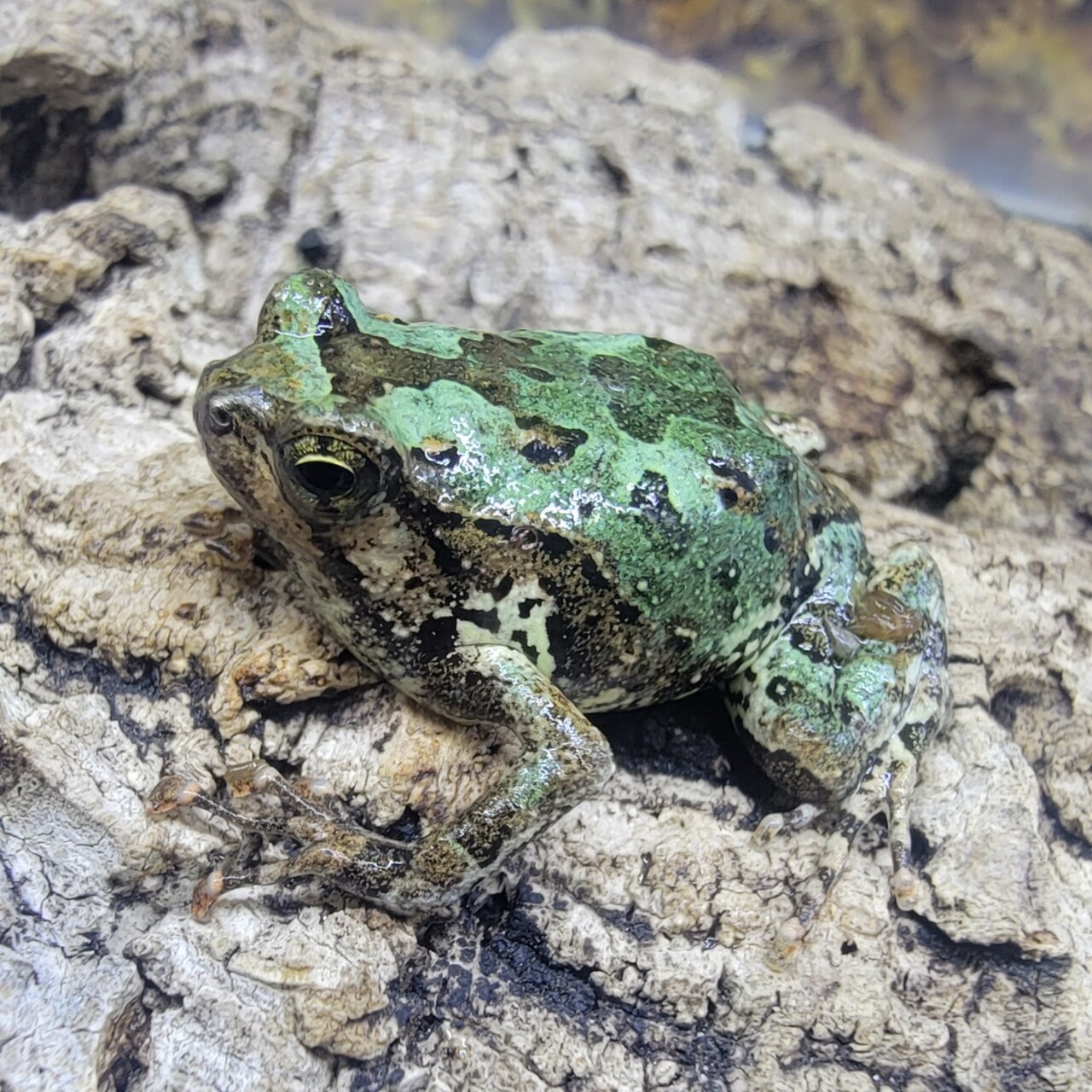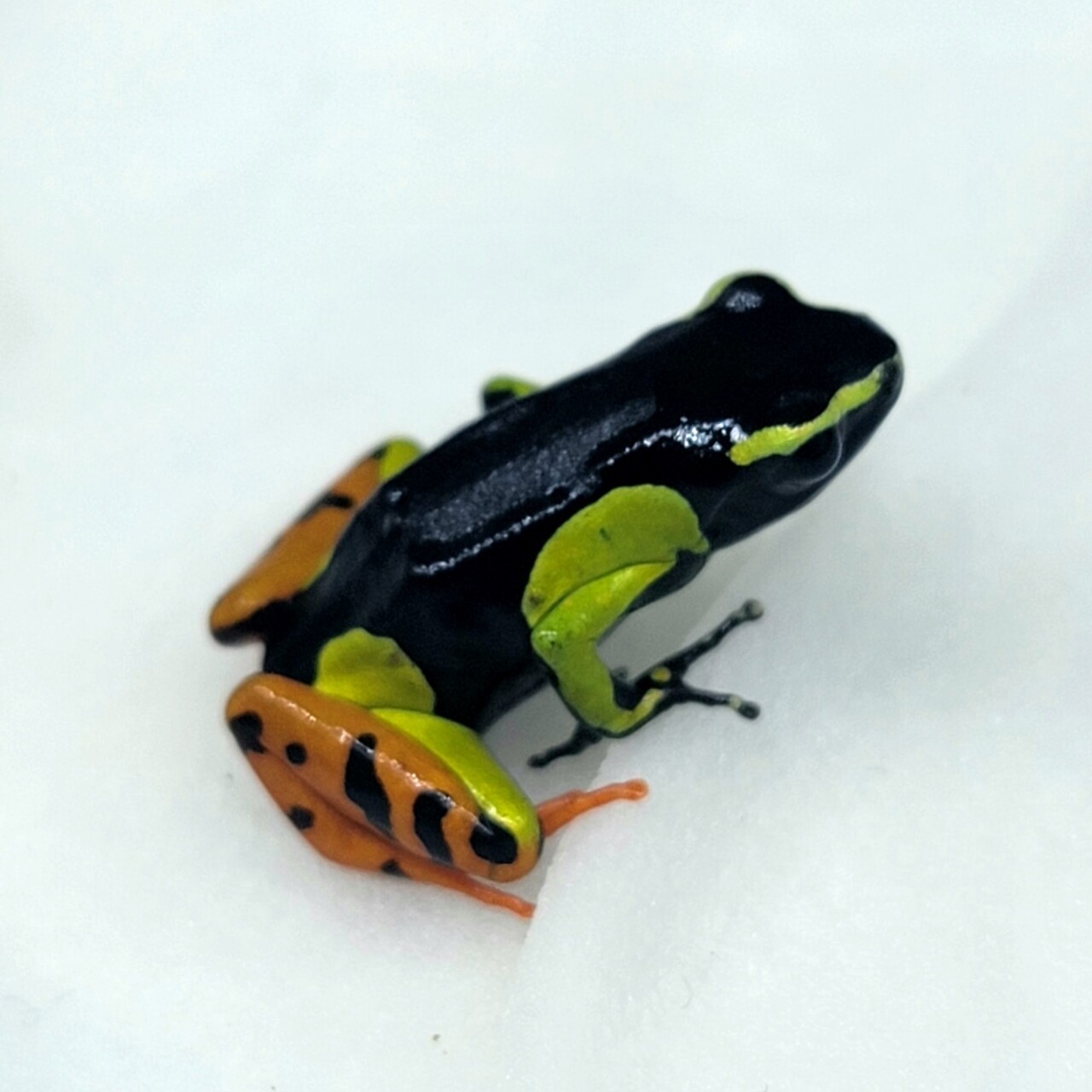 黒色と山吹色と黄緑色の対比が美しいアデガエル
