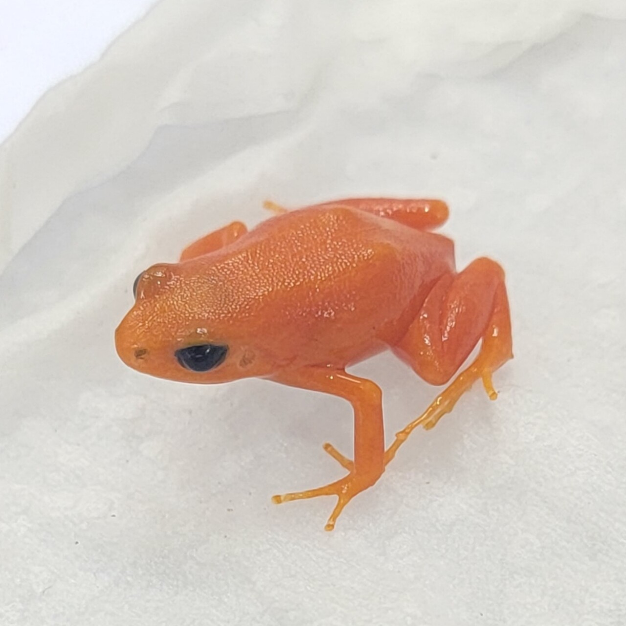 腹部を含め全身がオレンジ色から赤色と非常に派手な色彩のアデガエル