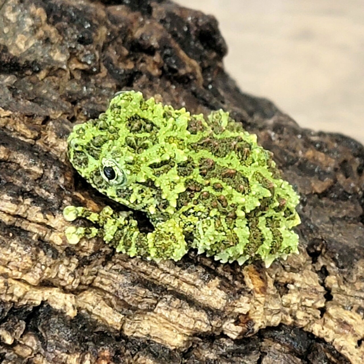 体表に顆粒状、コブ状、皺状の突起と苔に似せた体色で巧みに擬態するカモフラージュのプロ