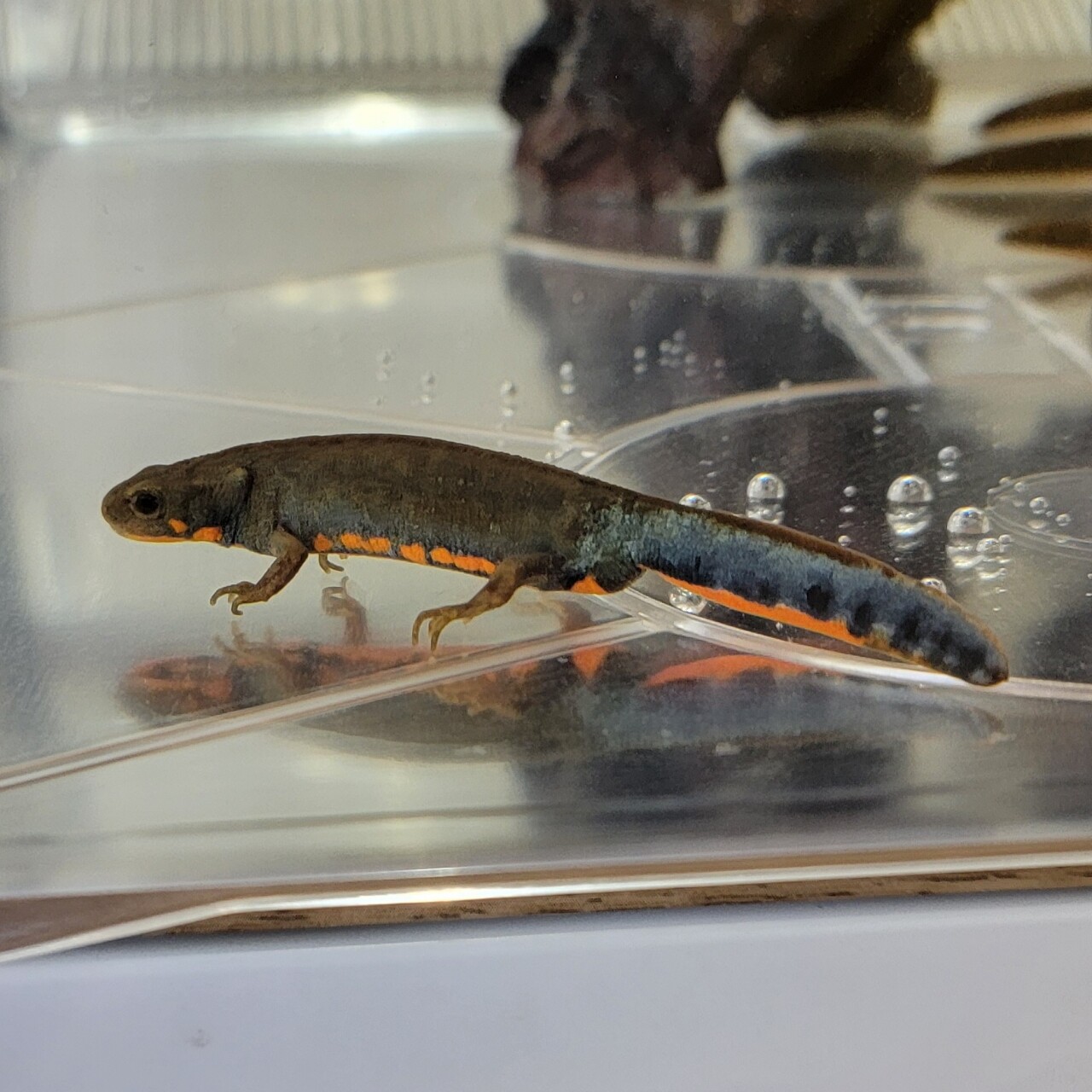 和名どおりの青みがかる体色と、繁殖期の婚姻色が美しい中国産の水棲イモリ