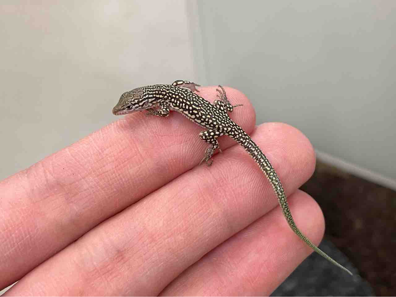 本種をケージにセッティング後、いきなりケージに迷い込んだコオロギを捕食した狡猾さを見せたかと思えば、ケージの前を人が通り過ぎただけで全力ダッシュで天蓋の金網に口吻を激突させる神経質な一面を見せるなんだか忙しいトカゲだなぁという印象です。