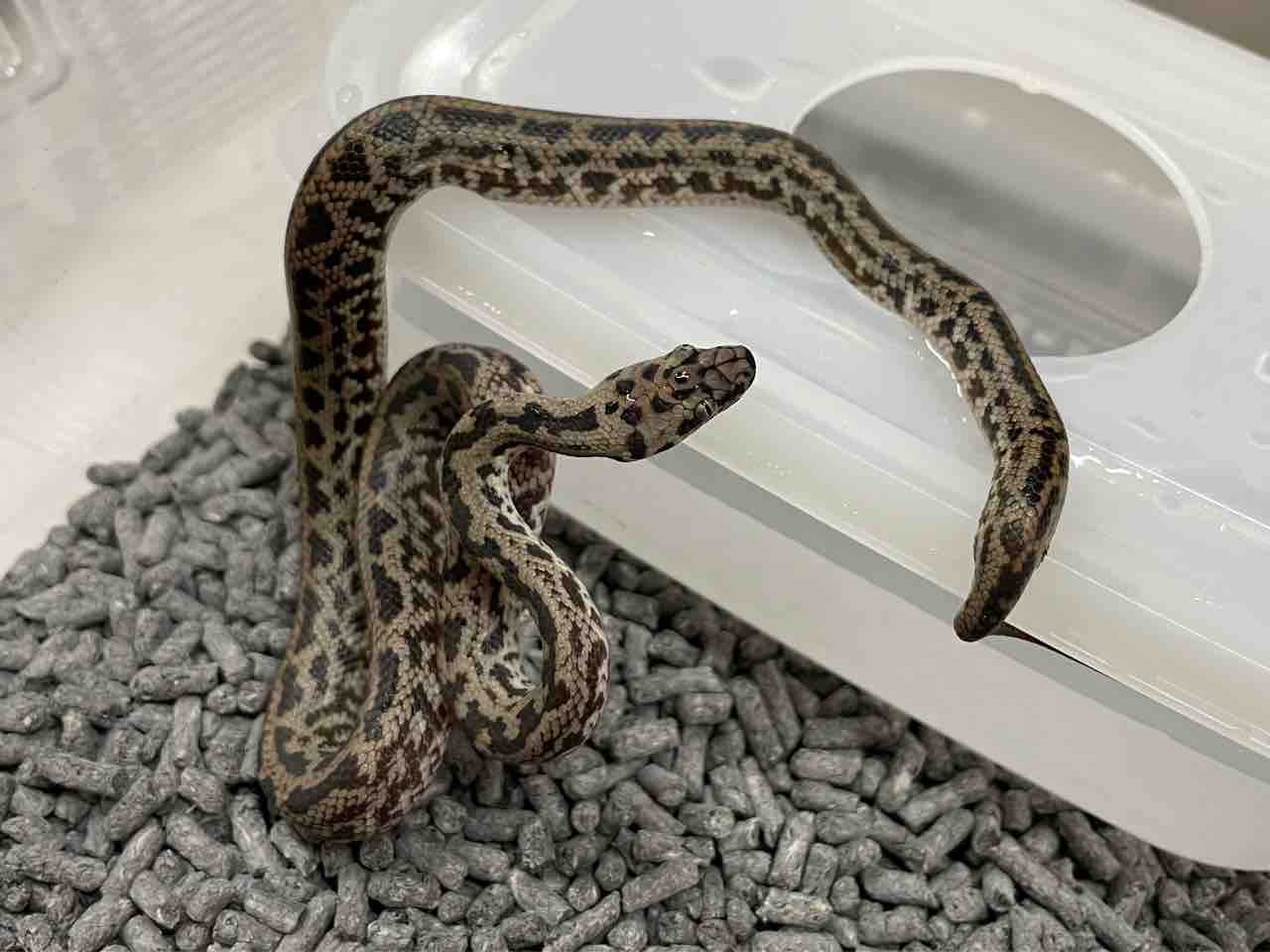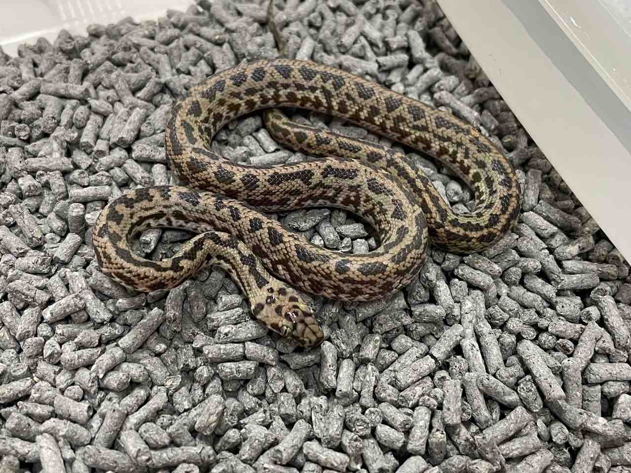 種としては属内でも大型になるドワーフパイソン(ヒメニシキヘビ)で飼育下では150cmを超える個体も見られますが大抵は1mほど。