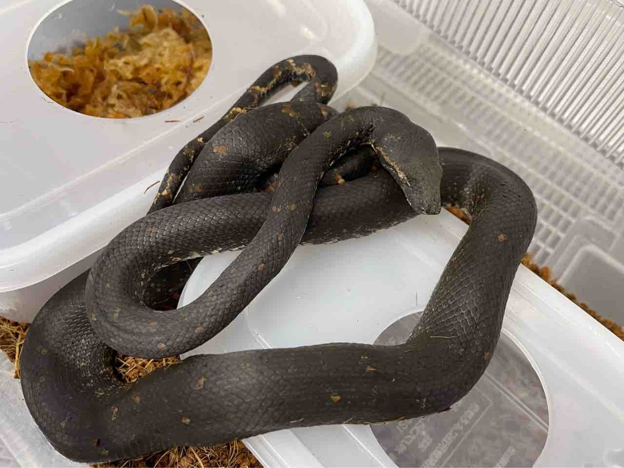 一応熱帯地域のヘビなので保温はしっかりしてやりましょう(目安は基底28℃前後、ホットスポット30℃以上)。