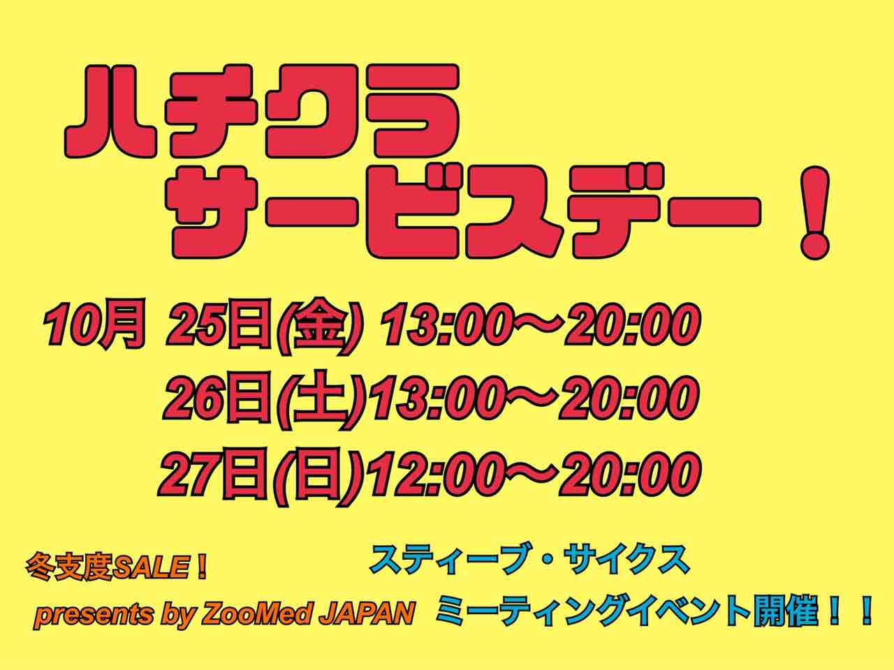 今週末はハチクラサービスデー!!スティーブも来るよ!!