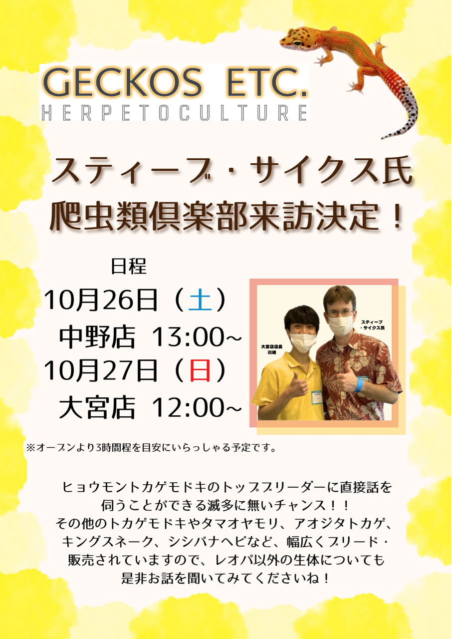 世界的レオパブリーダー『スティーブ・サイクス』氏を中野店に迎えることが決定!