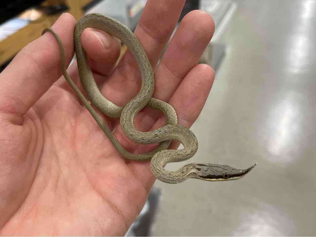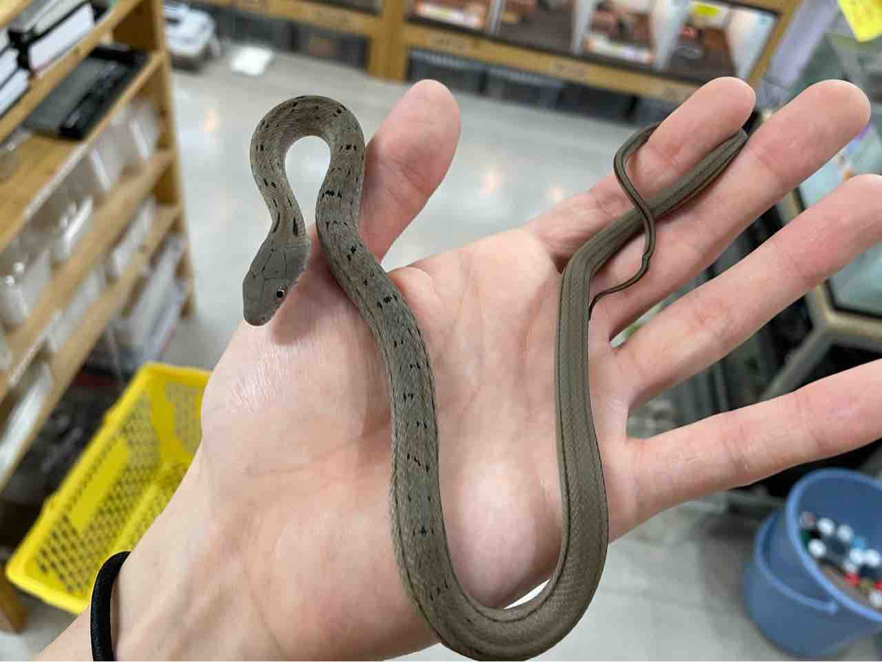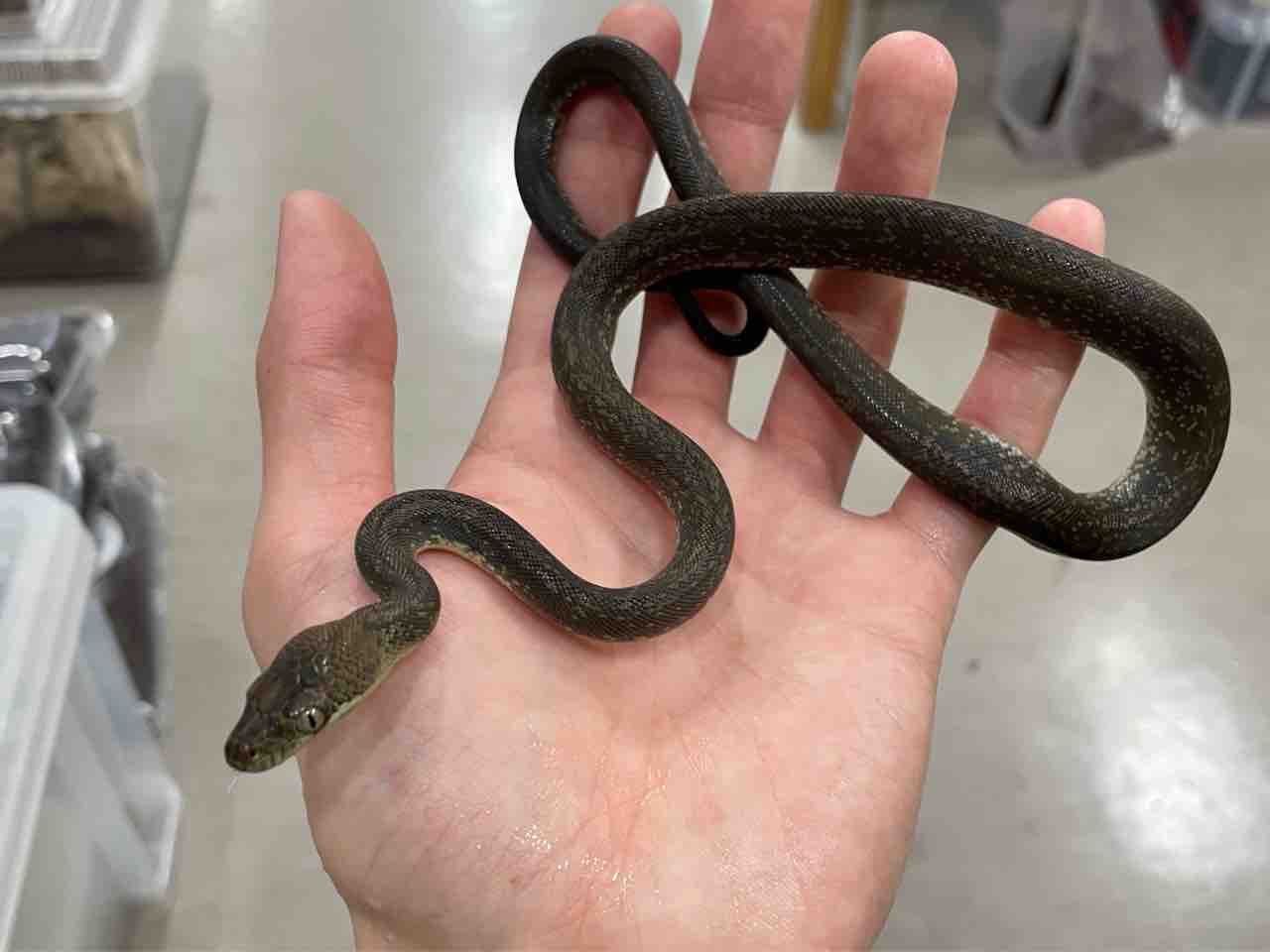 鼻先がツンと尖った緑のヘビ…と言いたいところですが、ベビー過ぎてまだ緑色にもなっていない可愛らしいサイズでの入荷です。