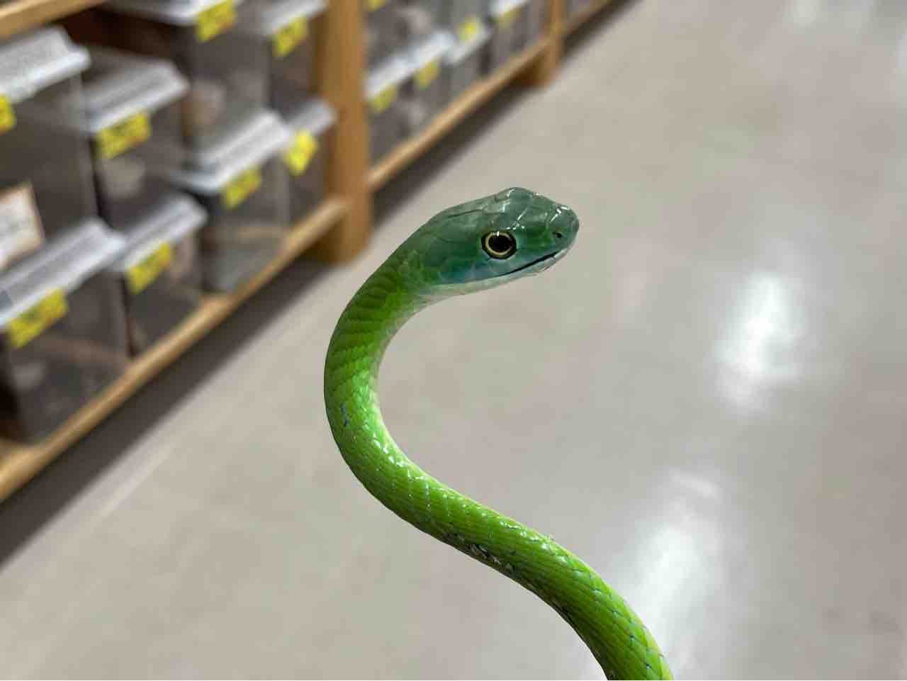 トーゴなど西アフリカ地域で広く見られる人気の緑のヘビ。