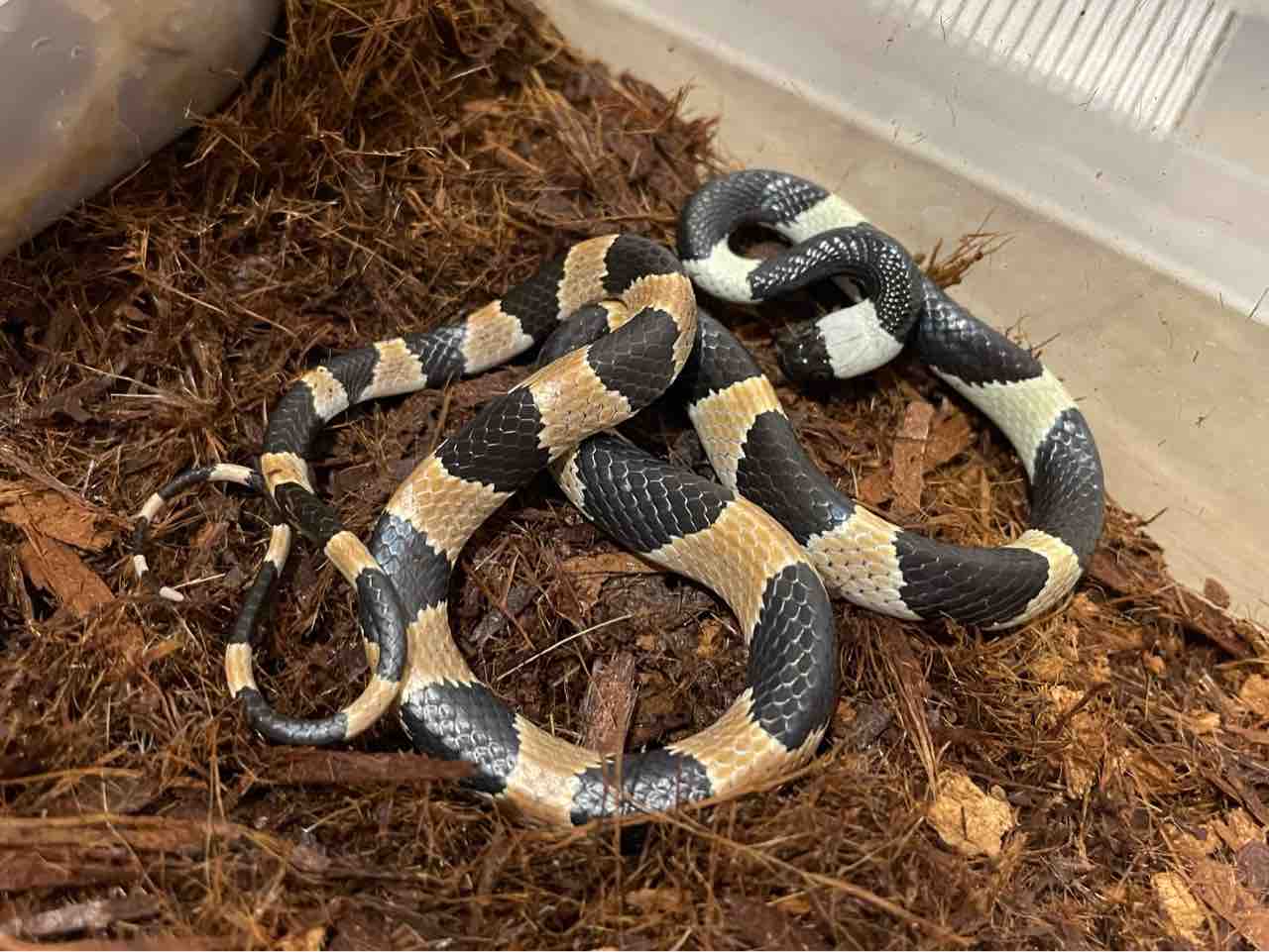 中国四川省に棲息する、ハッキリとしたバンド模様が美しい初入荷のオオカミヘビ。