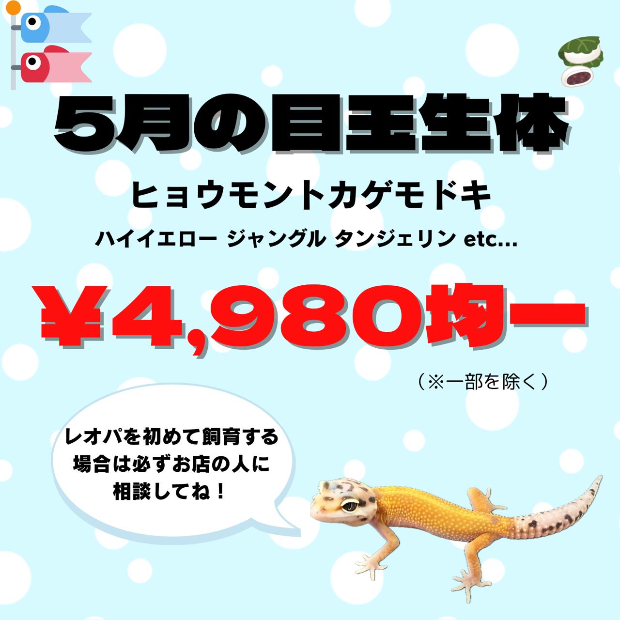 今回入荷のタイCBレオパは5月の大特価目玉に!