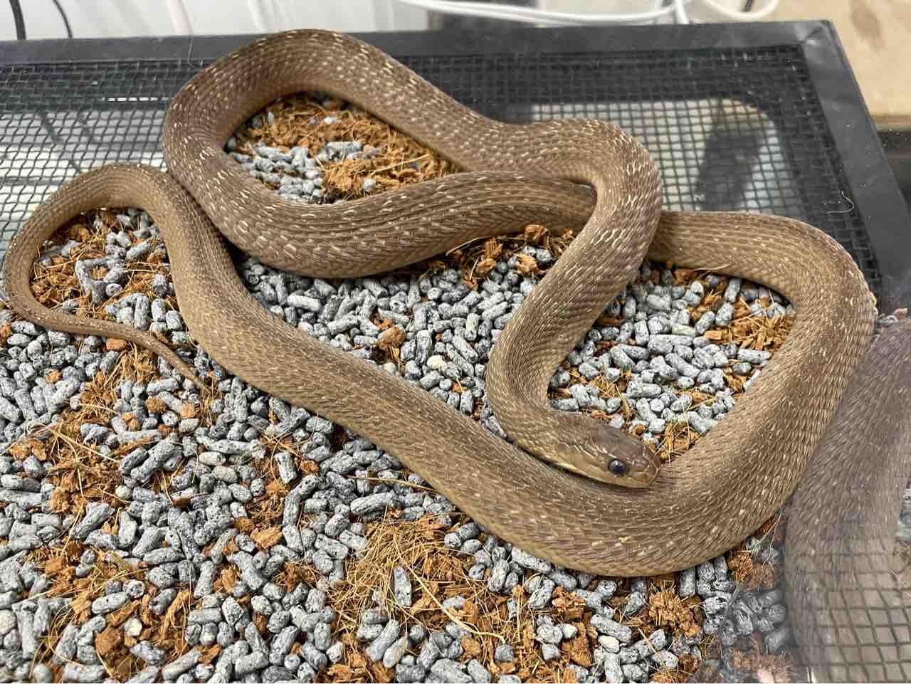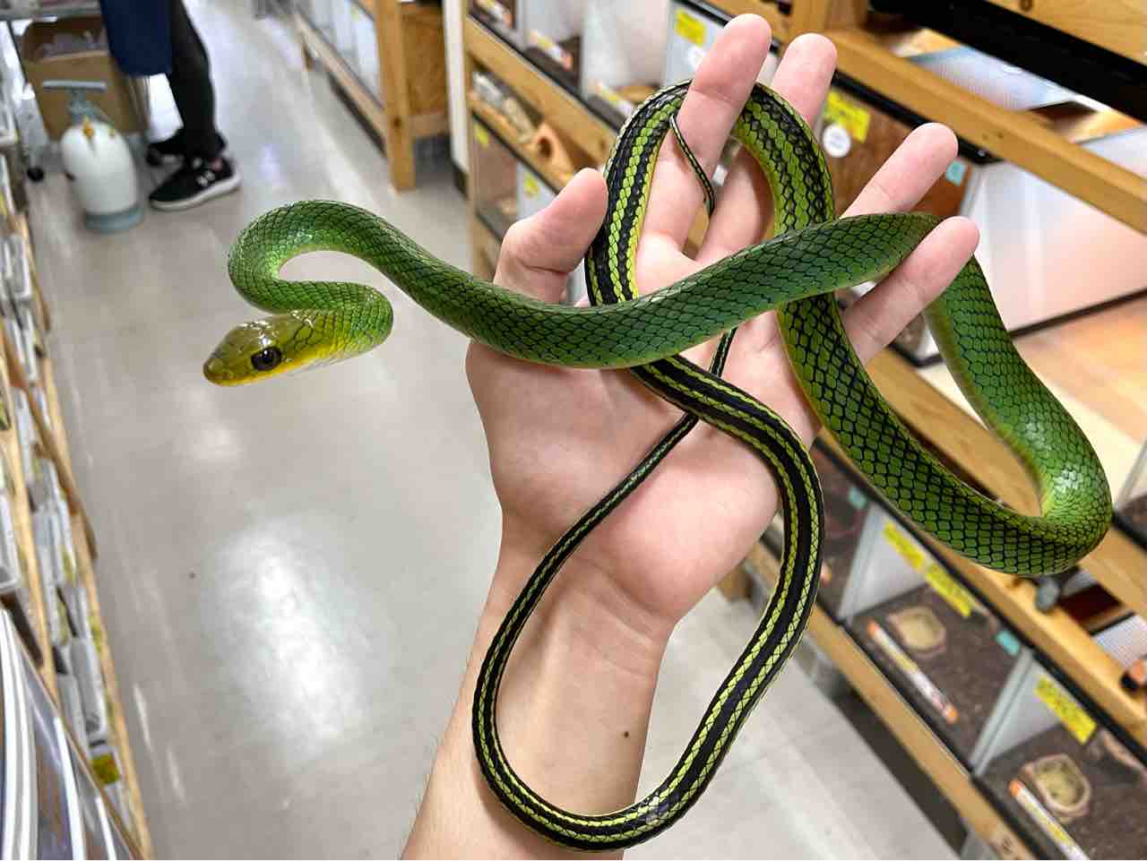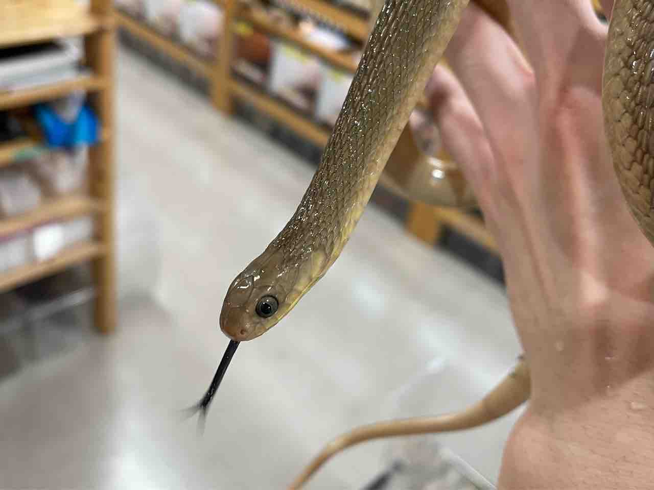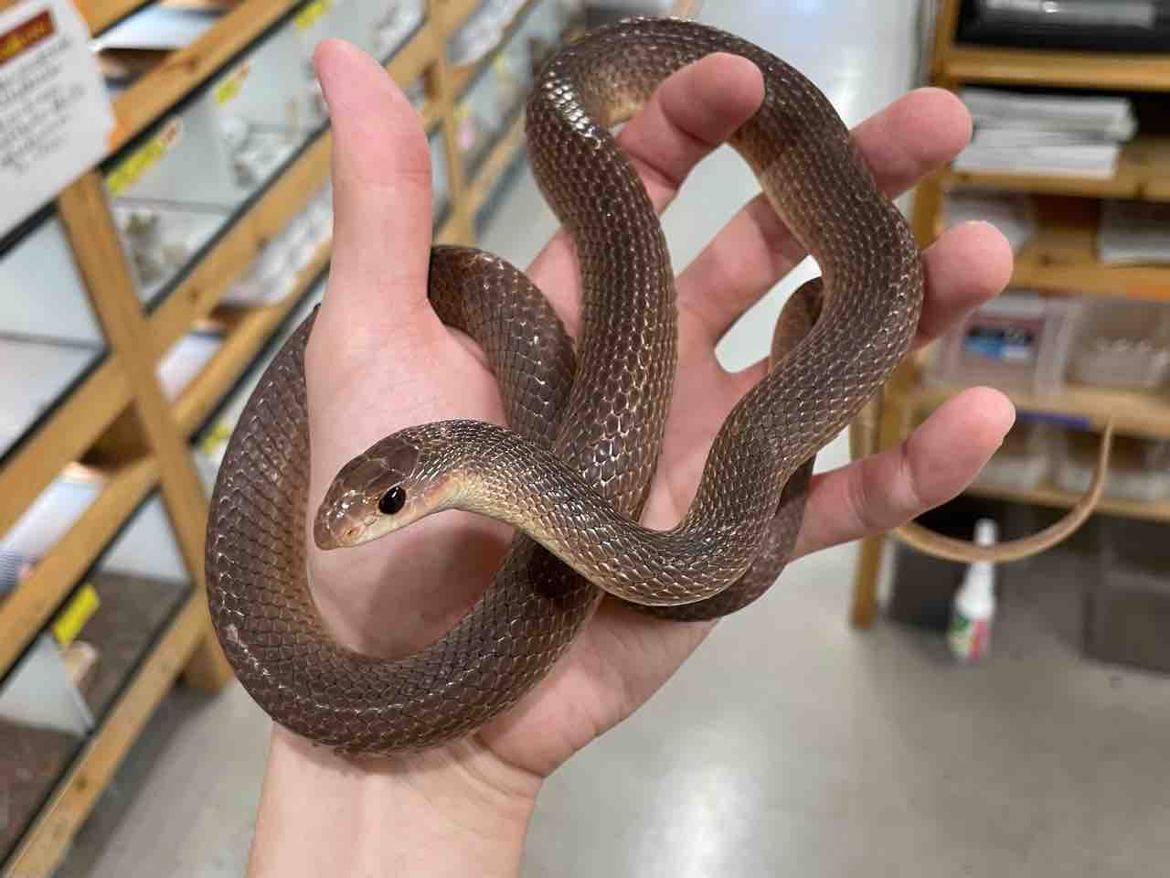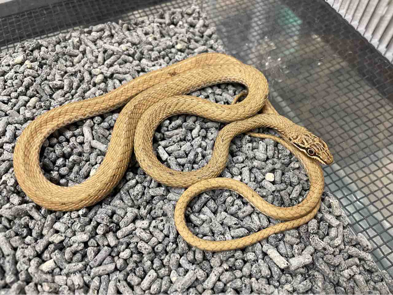 昼行性のヘビにしては充分大きい部類ですので飼育の際は底面積を広く取ってあげましょう。