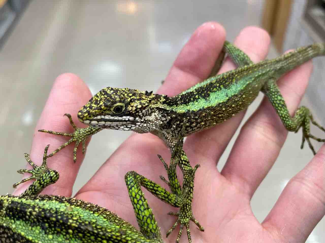 名前の通り宝石が散りばめられたような美しい姿になる大型のカナヘビ。