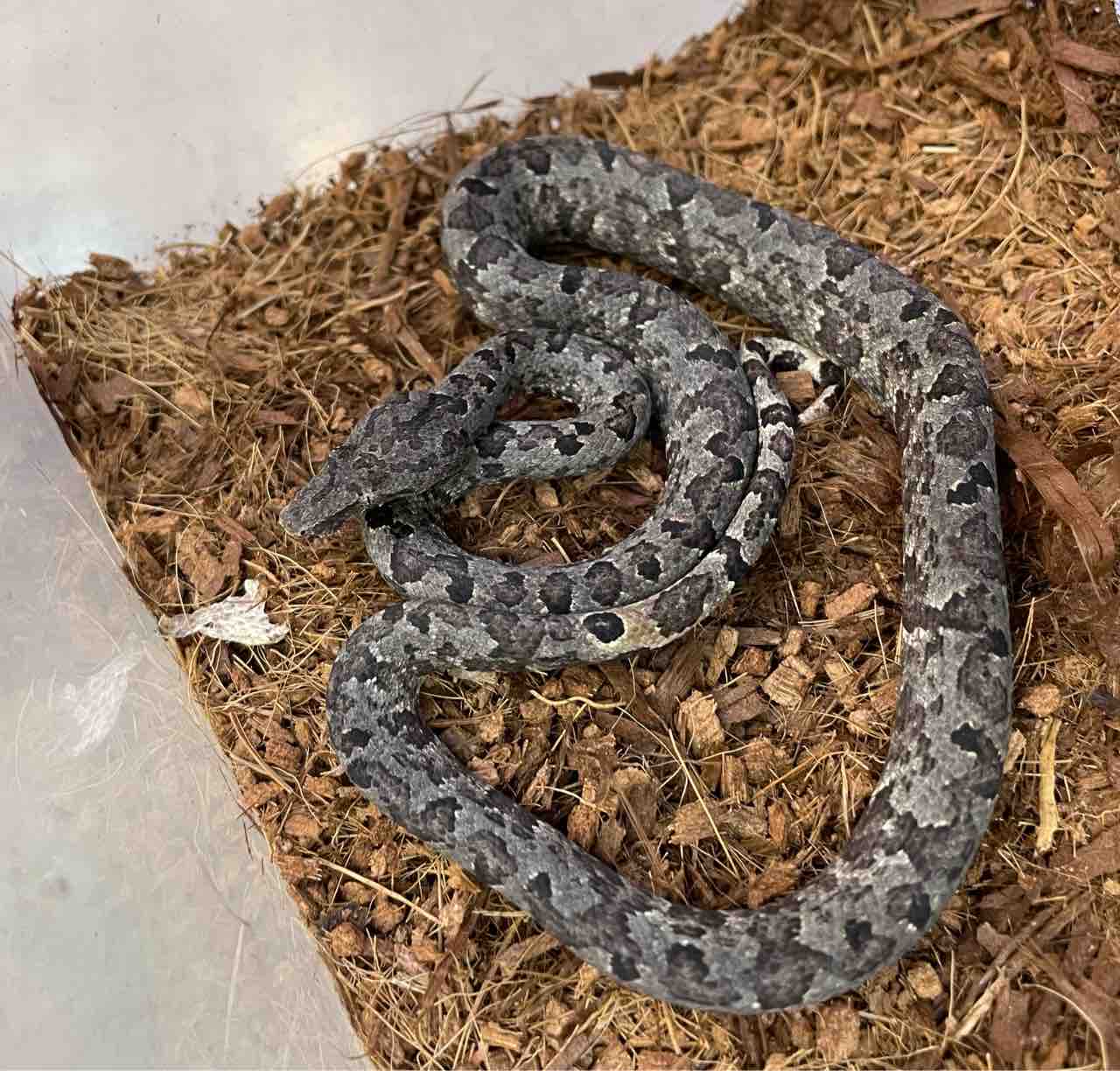 本種は主にアフリカ西部に広く分布するクチバシヘビで名前の通り嘴状に尖った吻端板が特徴的。