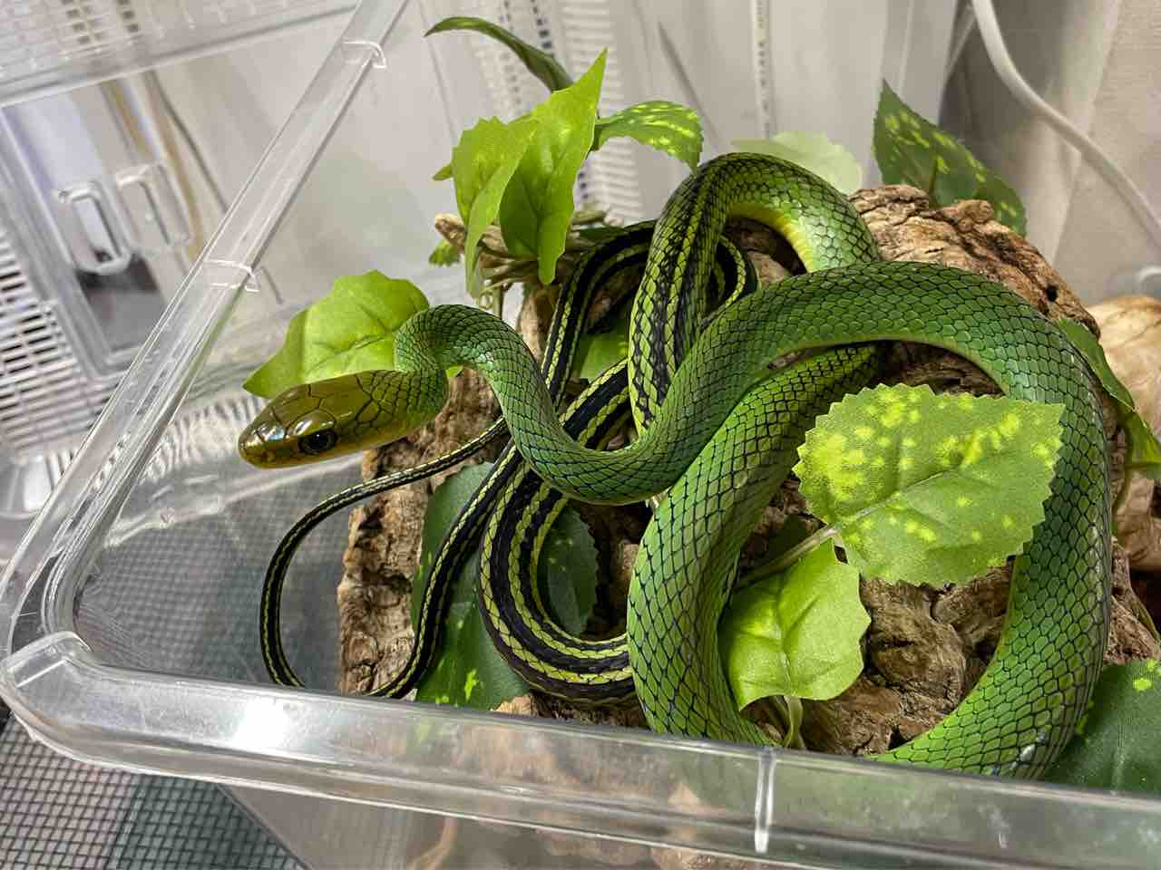 一般的なヘビを飼うように狭いケースでパネヒのみの飼育でも飼えなくはないですが、本種の本来のポテンシャルを引き出したいのなら騙されたと思って是非お試しあれ。