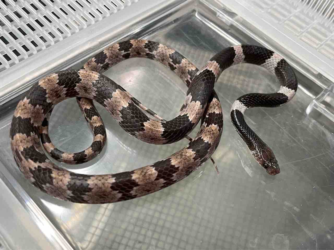そのため今回入荷したこの個体は特徴的に近かったため「カオバンオオカミヘビと思われる」としていますがもちろん未記載種の可能性もあります。