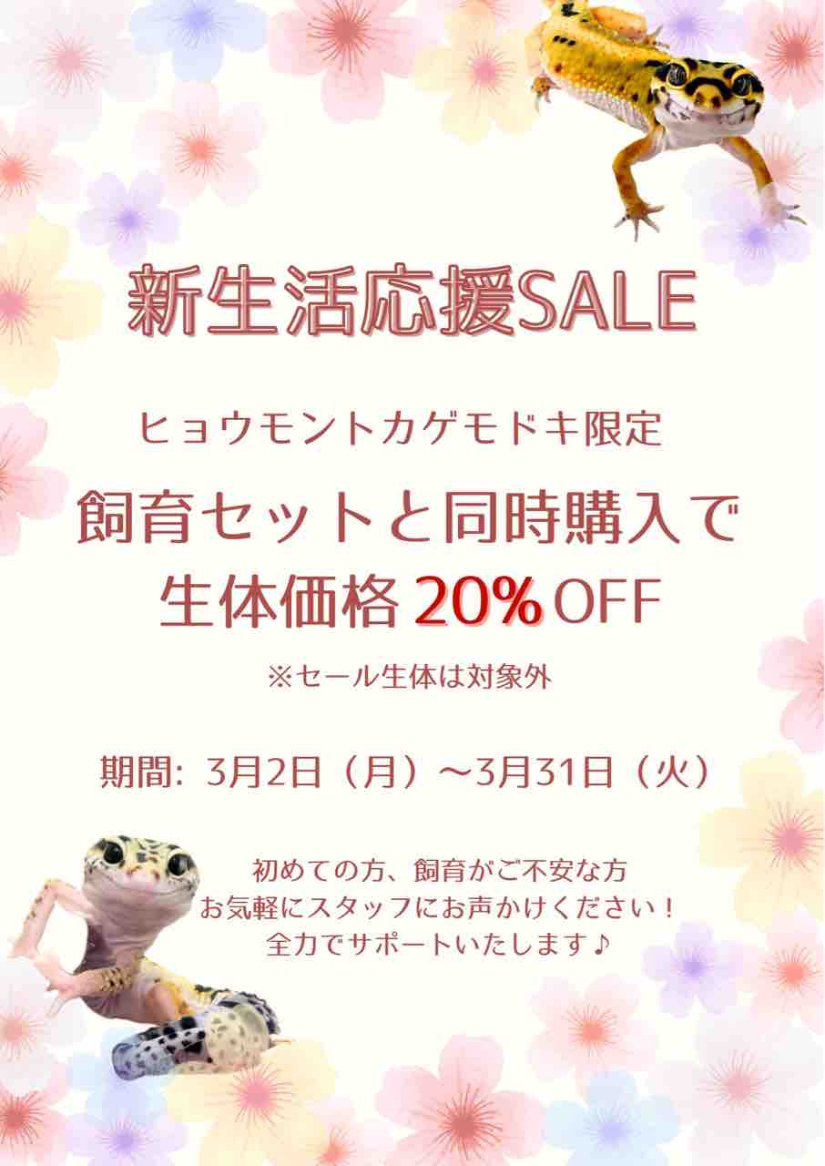 先日2日よりヒョウモントカゲモドキと飼育セットの同時購入で、生体価格が20%OFFになるキャンペーンを好評開催中です♪