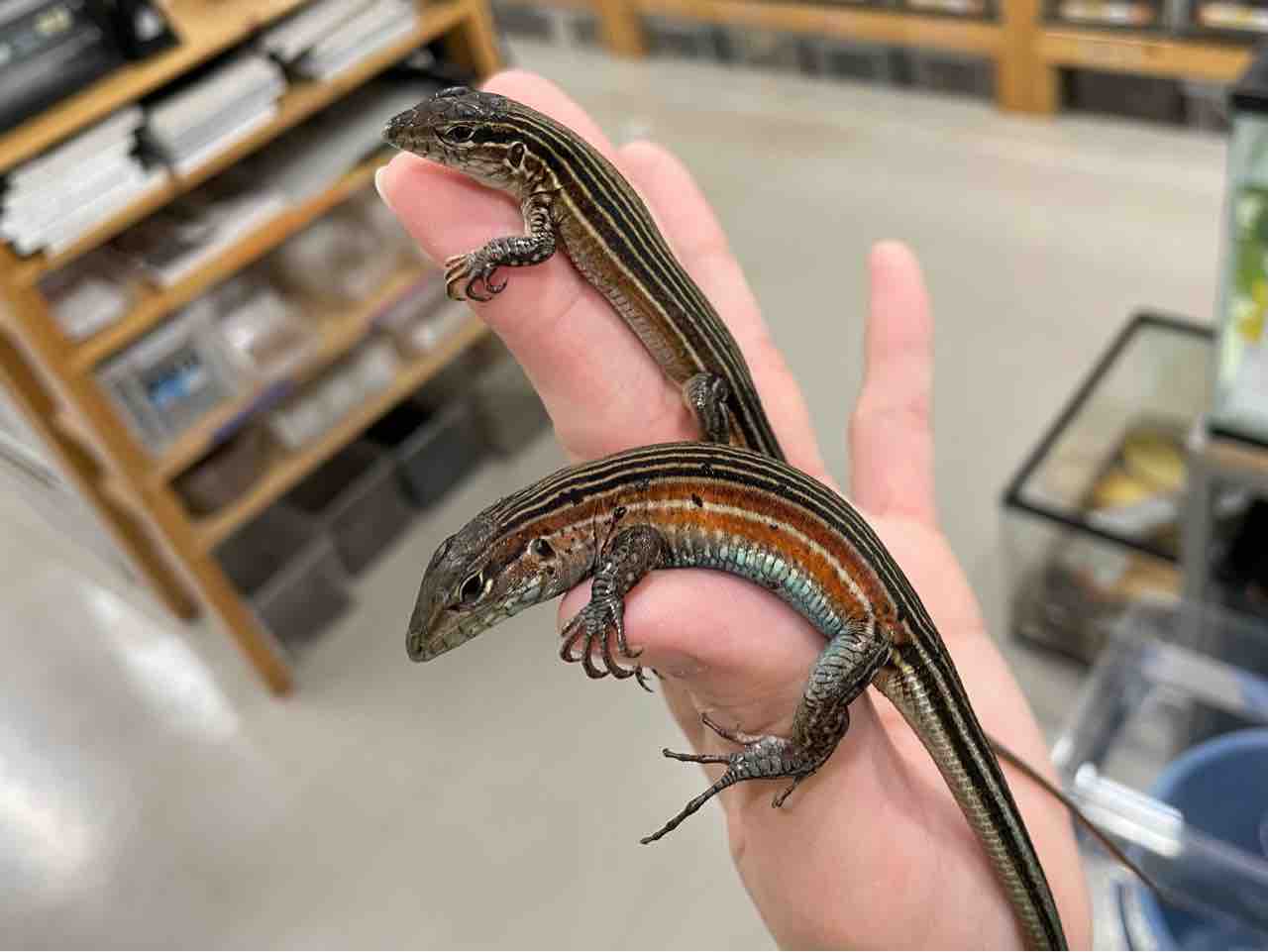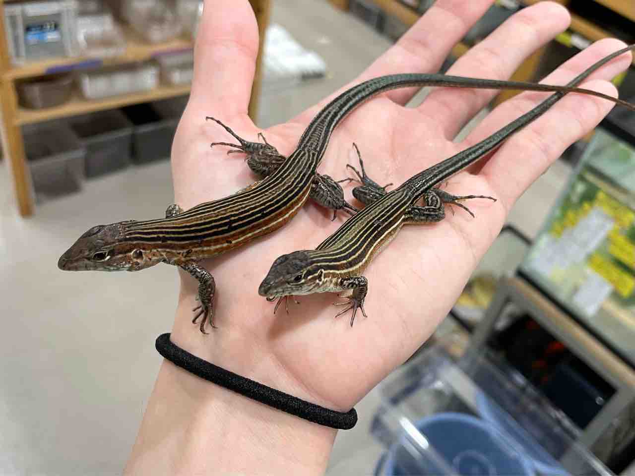 先日入荷したリボンハシリトカゲとはまた違った色彩をしています。