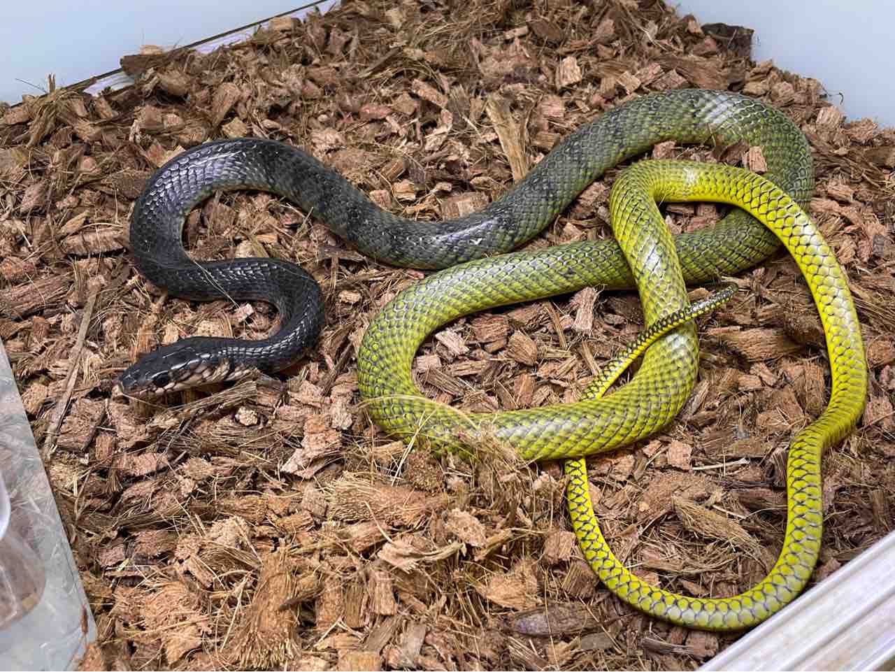 ヘビ自身が選択できるよう広めのケースで環境にはメリハリを持たせ、水容れは大きめの物を用意してやりましょう。