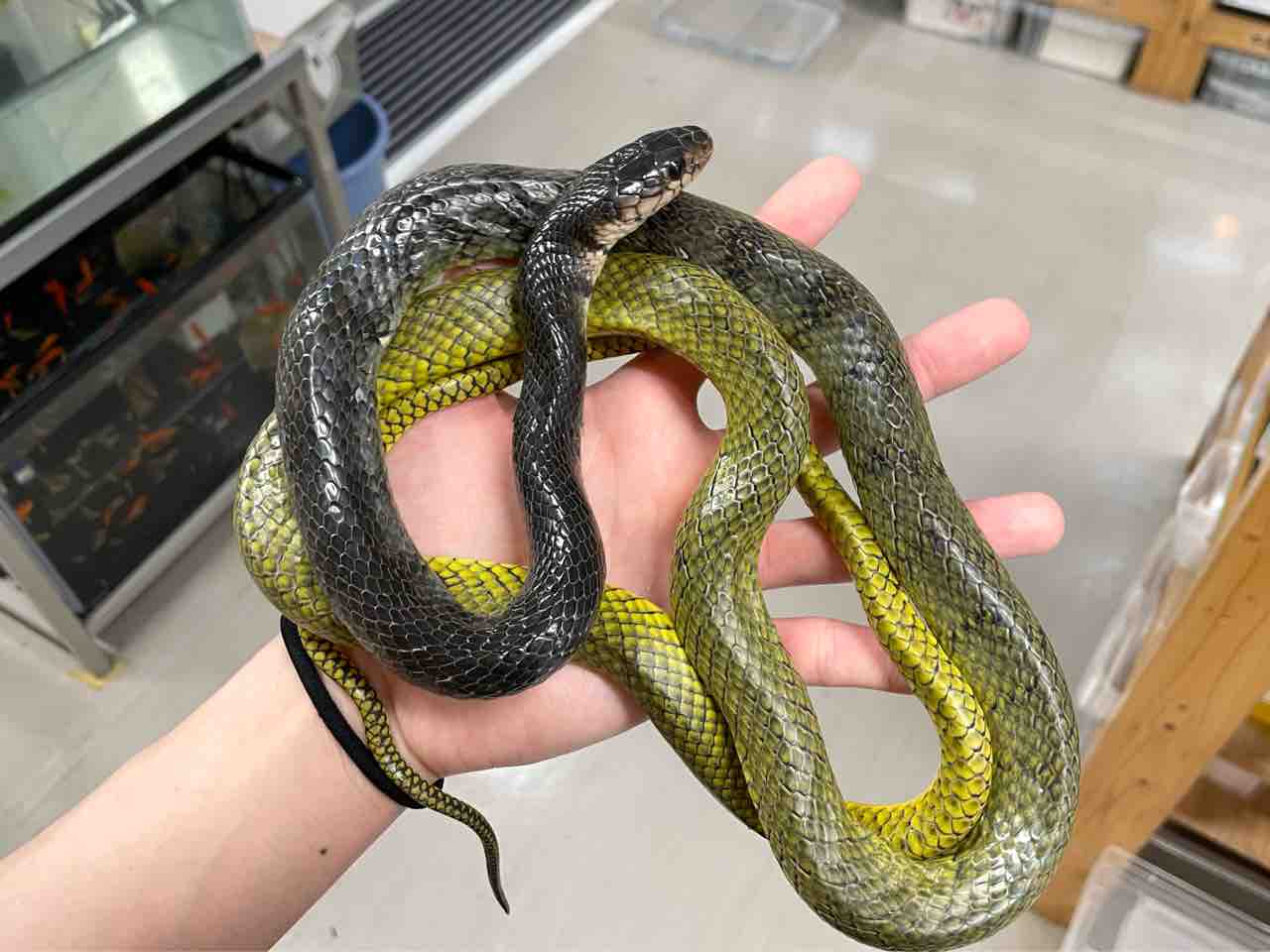 魚やカエルを好んで食べるヘビは小型~中型のヘビが多い中、本種は魚やカエルを食べて200cmの大きな体躯に成長するのはなんともロマンがありますね!