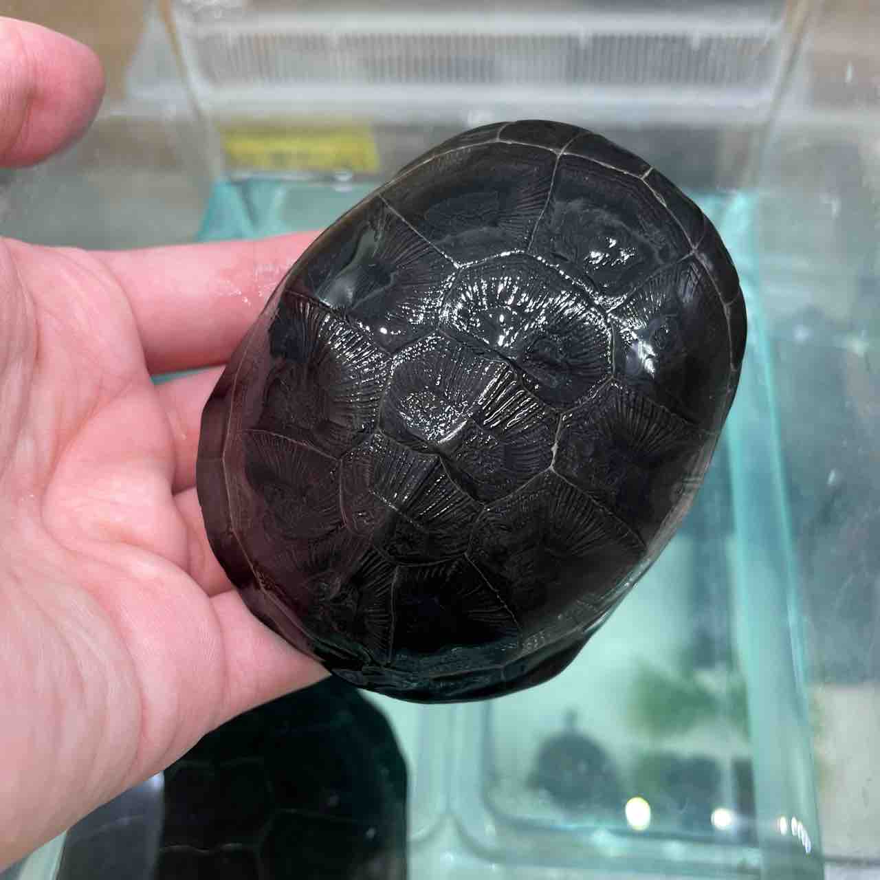 名前の通り黒色が特徴の本種ですが今回来たのは褐色の背甲に正中線上に黒いラインが入るタイプ。