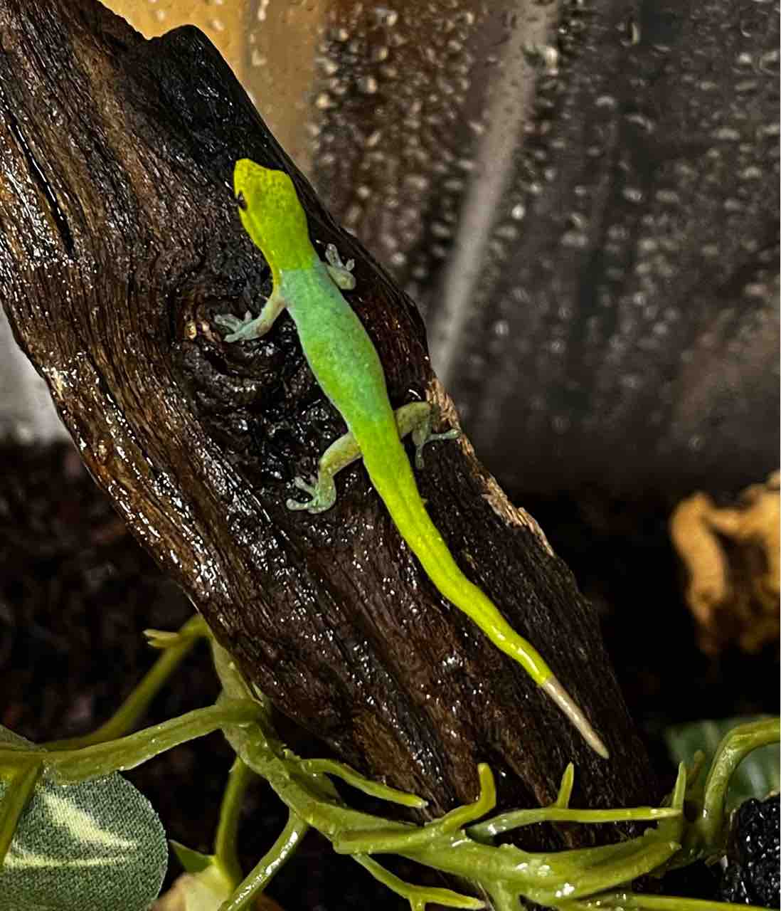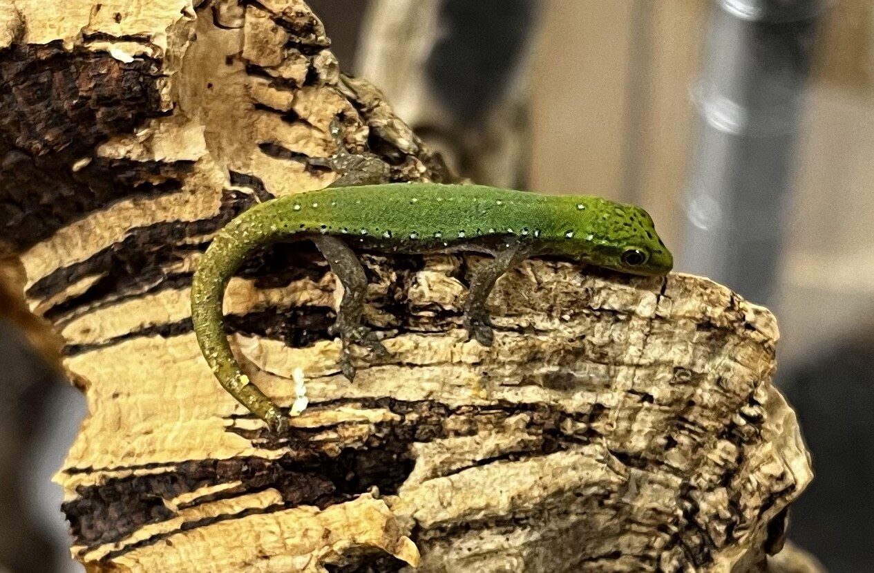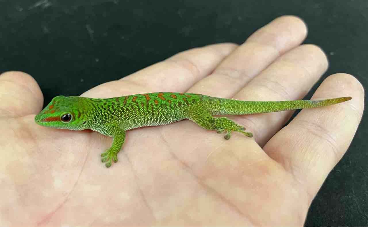 スポットのメリハリも美しく、このサイズからでもグリーンアイゲッコーの名の通り目が緑色なのがとても愛らしい。