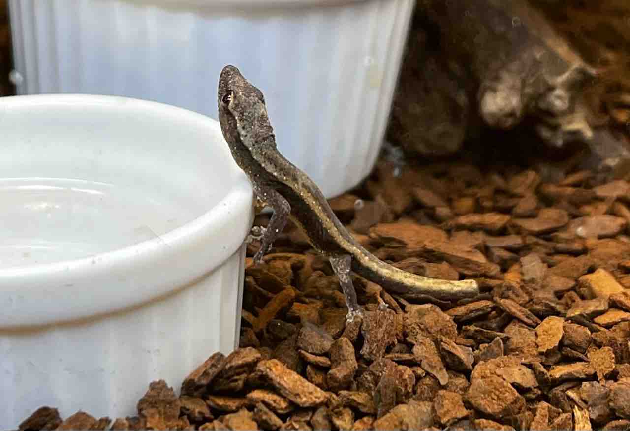 動きは早く、強く掴むと皮膚がズルムケてしまうので基本的には見る専なヤモリ。