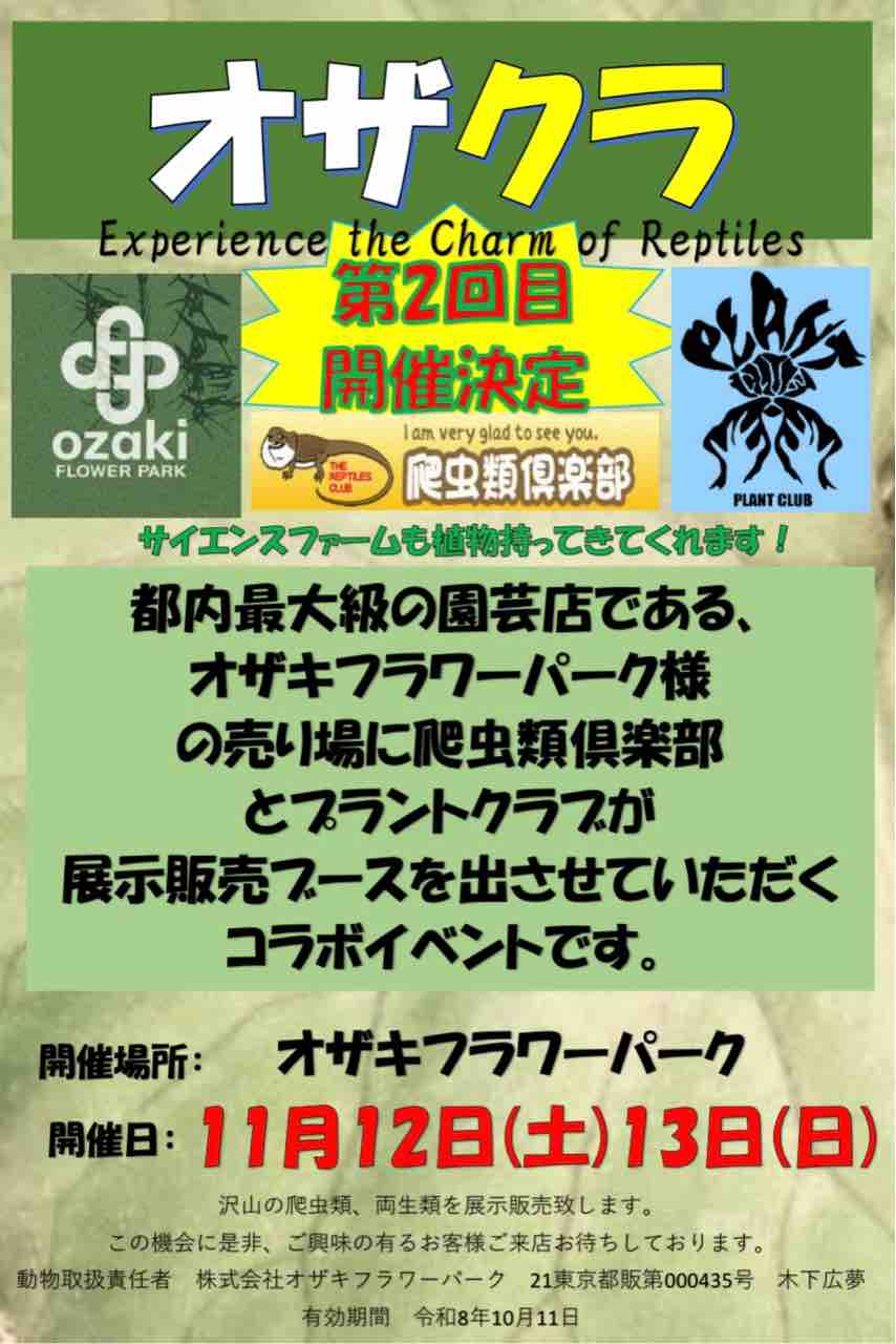 今回ハチクラからは「爬虫類倶楽部大宮店」、「爬虫類倶楽部ファーム」、爬虫類倶楽部植物部門「PLANT CLUB」が参加します!